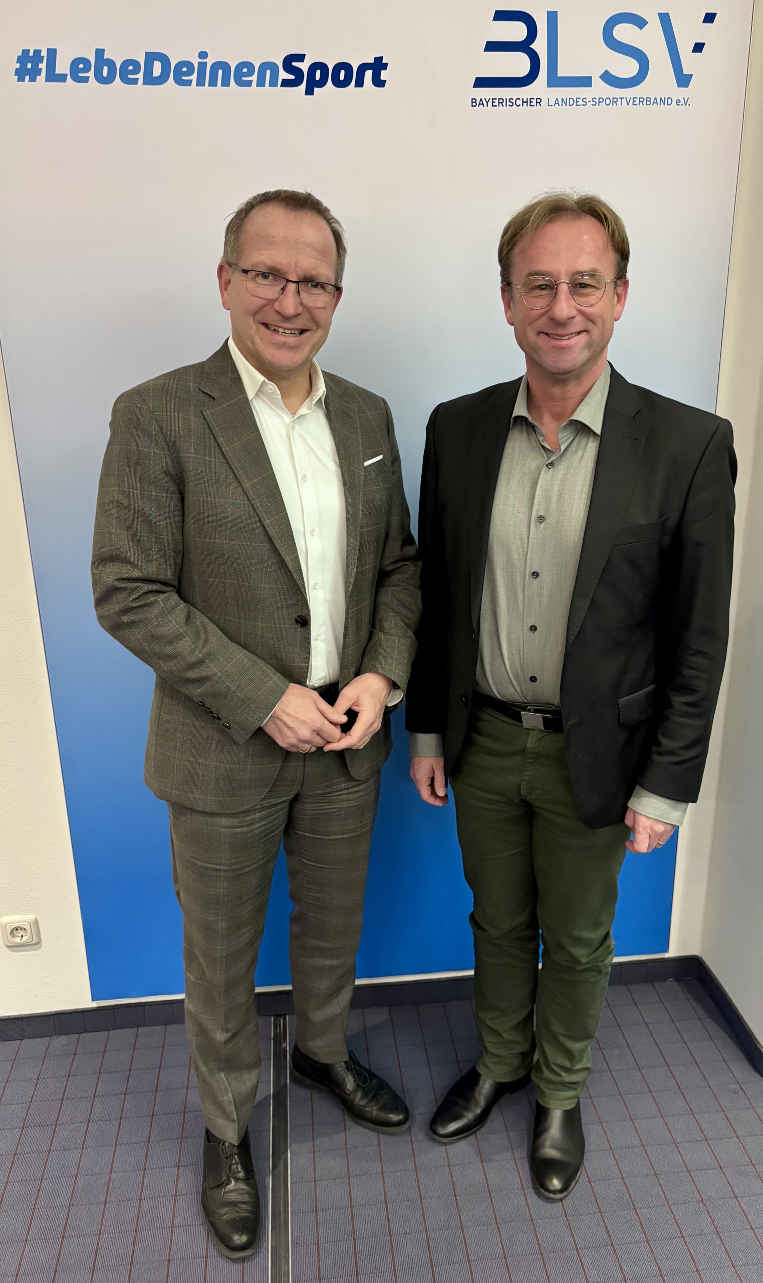 Am 2. Dezember 2025 hat sich der Bürgerbeauftragte der Bayerischen Staatsregierung, Herr Wolfgang Fackler, MdL, mit dem Präsidenten des Bayerischen Landes-Sportverbandes (BLSV), Herrn Jörg Ammon, zu den Anliegen und Themen des organisierten Sports in Bayern ausgetauscht. Dabei wurden u.a. die Herausforderungen der Sportvereine im Bereich der Vereinsverwaltung, Sportstätten sowie ehrenamtlichen Übungsleiterinnen und Übungsleitern besprochen. Der BLSV ist mit mehr als 5 Millionen Mitgliedschaften die größte Bürgerbewegung in Bayern.